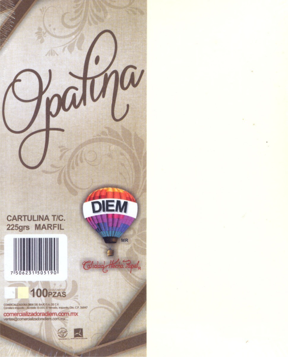 CARTULINA OPALINA T/CARTA MARFIL 225 GRS PAQ C/100 PZAS